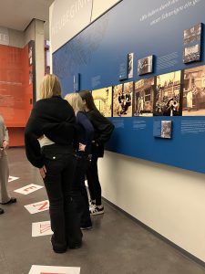 Klasse 9.1b zu Besuch in der Mahn- und Gedenkstätte Düsseldorf: Am Donnerstag, den 19.02.2026 verbringt die Klasse 09.1b keinen üblichen Schultag. Stattdessen fahren sie mit ihren Lehrerinnen unter der Leitung von Frau Fröhlich nach Düsseldorf, um dort die Mahn- und Gedenkstätte zu besuchen. Im Rahmen des Lehrplans der 9. Klasse Gesamtschule NRW im Fach Gesellschaftslehre, wird im Unterricht das Thema Nationalsozialismus und zweiter Weltkrieg behandelt. Gerade in politisch angespannten Zeiten, in denen extreme Gruppen den breiteren Weg in die gesellschaftliche Mitte finden, ist es von großer Bedeutung die gemeinsame deutsche Geschichte zu untersuchen. Die Mahn- und Gedenkstätte bietet hierzu Schüler: innennahe Workshops an, bei denen die Lernenden sich zum Beispiel mit Biografien Jugendlicher im Nationalsozialismus auseinandersetzen. Sie arbeiten zu realen Personen und verstehen so intensiver, wie Menschen ihres Alters vor nicht einmal hundert Jahren in Düsseldorf und sogar Grevenbroich lebten. Die Lehramtsanwärterin Frau Hakyol, die die Exkursion im Rahmen ihres Ausbildungsunterrichts begleitete, war ebenso begeistert und berührt von den Geschichten und dem Aufbau des Workshops, wie Fachlehrerin Fröhlich. „Die Schüler:innen konnten sehr eindrucksvoll erfahren, wie wertvoll ihr Leben in Frieden und Sicherheit ist, dass Meinungsfreiheit nicht selbstverständlich ist und Demokratie unsere wichtigste Errungenschaft ist.“